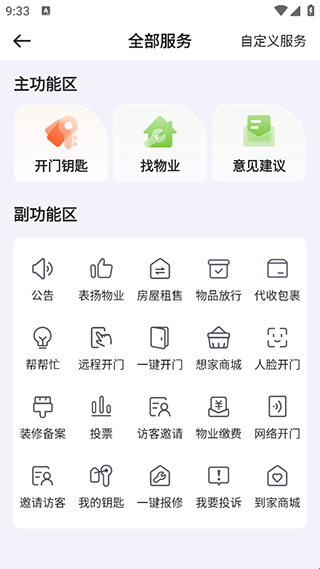 1、物业服务:基础服务,一键预约;物业费用,轻松查询。