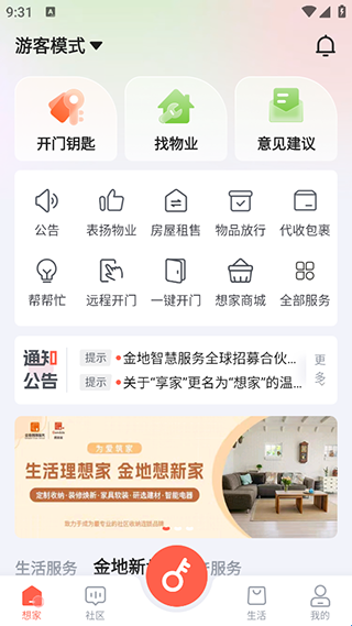 想家社区是一款非常好用的社区服务软件,软件内多包涵的功能是非常全面的,支持线上缴费、维修服务、房屋租赁等,满足居民日常生活所需,实用便捷,提供高效物业服务、优质生活服务内容。通过线上公示让用户了解各种信息以及参与决策,还可以在APP里面交到同小区的好友,有需要的小伙伴们快来下载体验吧!