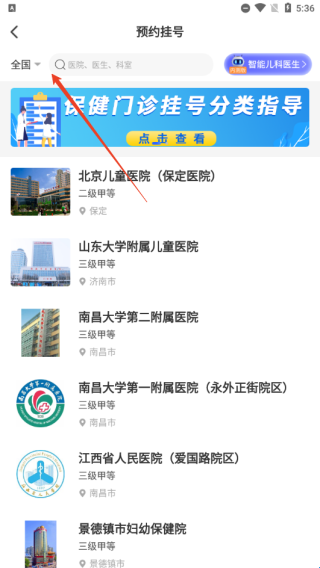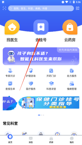 1、点击首页的“去挂号”;