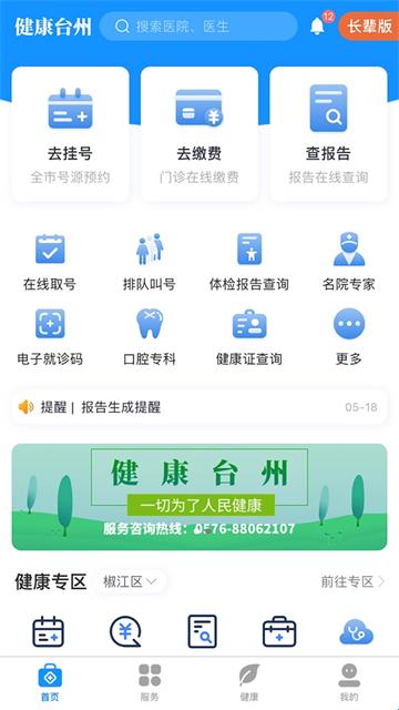 健康台州预约挂号是一款非常好用的官方线上看病问诊软件,现已改名为健康台州,专门为台州本地人民设计,可以直接通过手机在线预约挂号、查询报告、查看健康档案、疫苗接种预约等多种服务,软件可以支持先诊疗后付款,一键实名认证后使用更加便捷,有需要的小伙伴们快来下载试试吧!