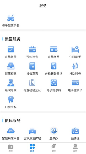 4、可以预约挂号、查询报告、查看健康档案、疫苗接种预约,除此之外,在这里可以先诊疗后付款。