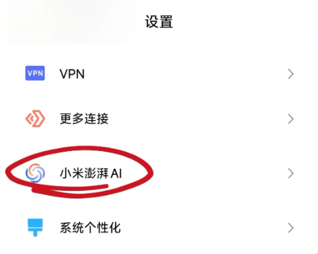 1、首先,打开设置,点击小米澎湃AI。