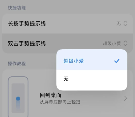 5、系统手势唤醒:点击此项以后,往下滑找到长按手势提示线和双击手势提示线,点击即可设置是否开启超级小爱。