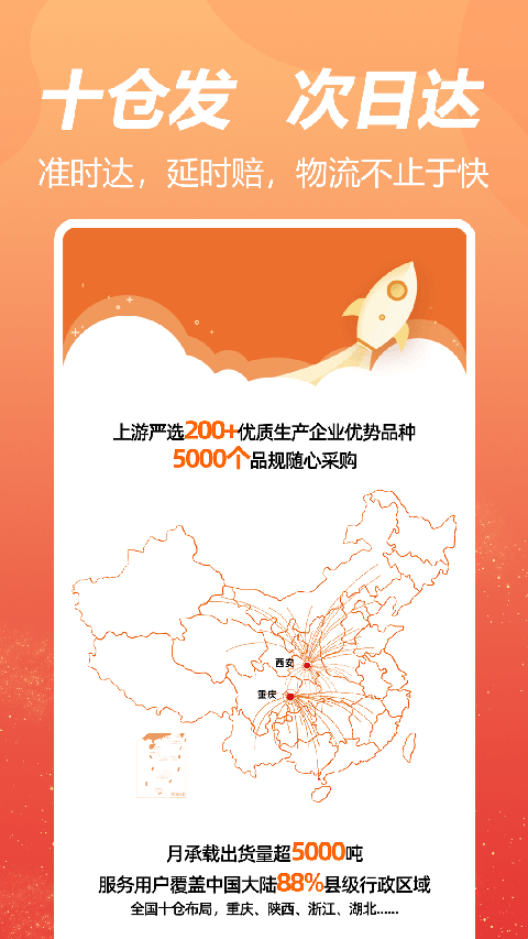 2、快:次日速达,十仓布局,品质物流,准时达,延时赔,物流不止于快;