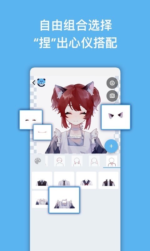 在这里,你可以使用作者们提供的模板,自由组装配件,“捏"出各式各样的新角色。如果你是画手,则可以用拆分部件的方式来作画,然后通过捏咔编辑器上传素材、调试并制作模板。