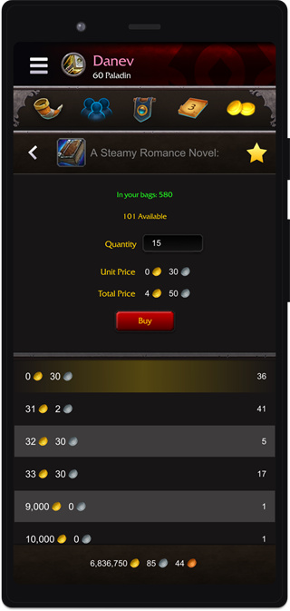 魔兽世界助手,即魔兽世界随身助手app。这是专为魔兽世界打造的游戏辅助工具。用户可以在这里查看你需要的游戏道具和物品,看到喜欢的物品可以直接进行拍卖,与他人竞价或者是一口价竞拍,轻松拿下游戏道具。