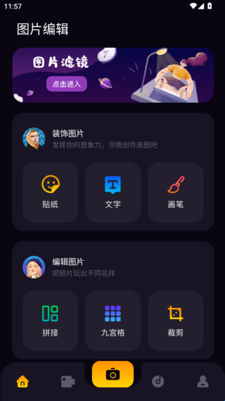2、APP为你提供了贴纸、文字、画笔等多种功能。