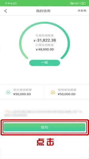 2、进入贷款产品详情后点击“立即申请”或通过“我”--“我的信用”点击“签约”按钮,前往签约页面。