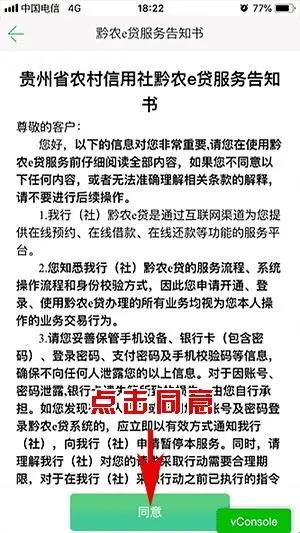 4、进入黔农e贷服务告知书:确认信息点击同意。