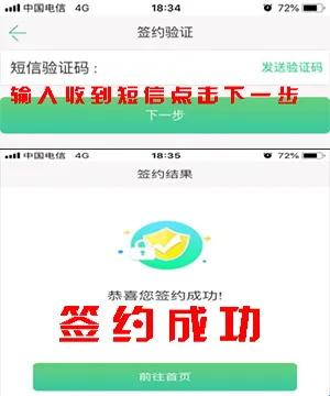 9、签约成功:收到短信验证码,输入正确后确认提示签约成功。