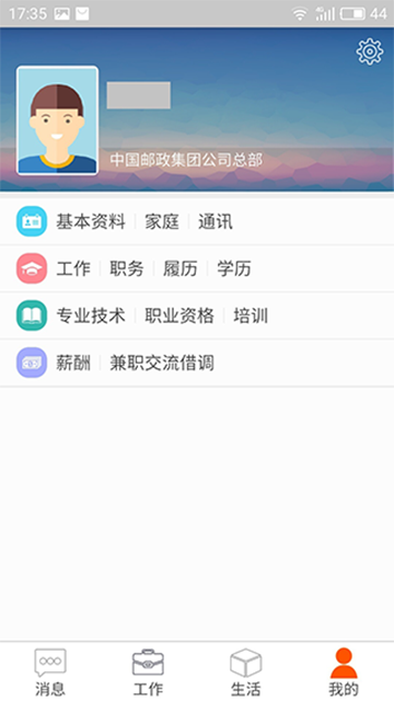 1、邮政员工自助客户端,为中国邮政集团公司员工提供消息通知的查询、微课程的查阅与学习、邮政生活/购物通道及个人信息的查询。
