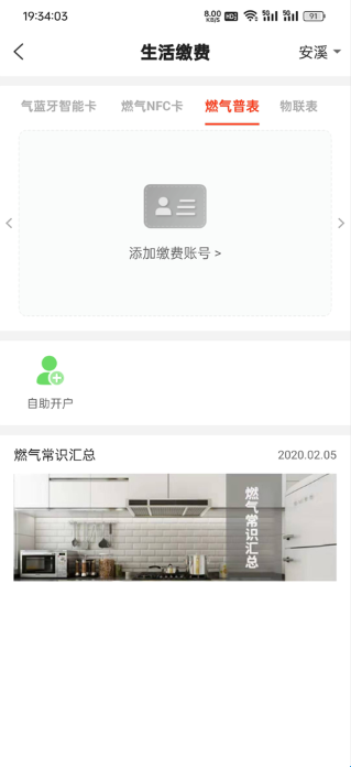 2、首次使用需添加普表缴费账户,点击「添加缴费账号」。