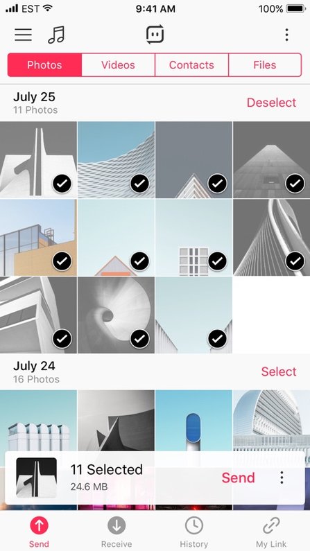 1、在“发送”页面选择需要传输的文件后,点击“发送”