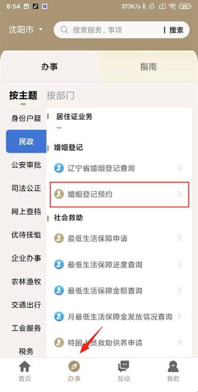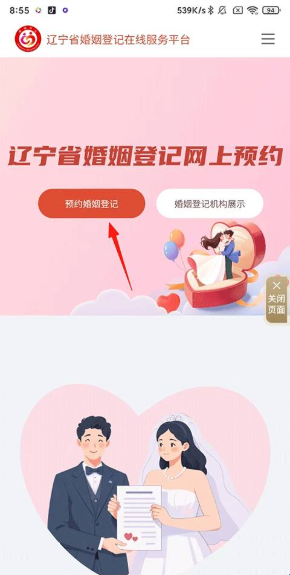 2、在打开的页面点击预约婚姻登记。