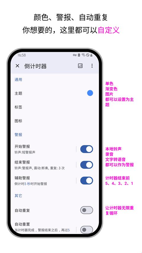 2、表中表:计时过程中可以设置小的提醒间隔。例如,在计时快到时先提个醒。