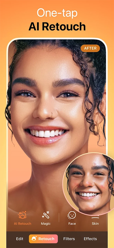 该软件采用专业级图像处理技术,手动修颜修图,磨皮美白,祛斑祛痘白牙大眼,保留高画质,展现最自然的你。除了高清编辑功能外,还包括一些工具,可让您模糊、裁剪、拉伸、瘦身和调整您的照片,以获得艺术、美丽和戏剧性的触感。AirBrush图片编辑软件可以选择自动修饰图片或手动修复图片,即使是最好的照片和自拍照片也能增强完美、美丽的画龙点尾效果。