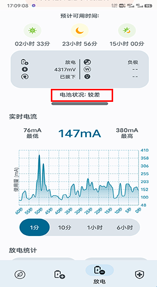 专门用于电池统计的部分,包括充电/放电百分比和完全充电/放电的估计时间。