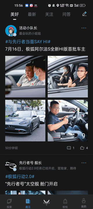 2、点击底端“遇见”,你可以在这里看到各路车主发布的动态。