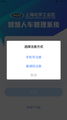 1、进入智慧人车app页面中,在登录页面输入账号,没有账号的点击新用户注册按钮;