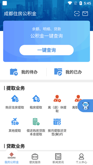 1、在本站下载该软件打开,可以看到拥有提取业务、贷款业务、个人业务、跨省业务等等板块,主页可以使用一键查询功能。