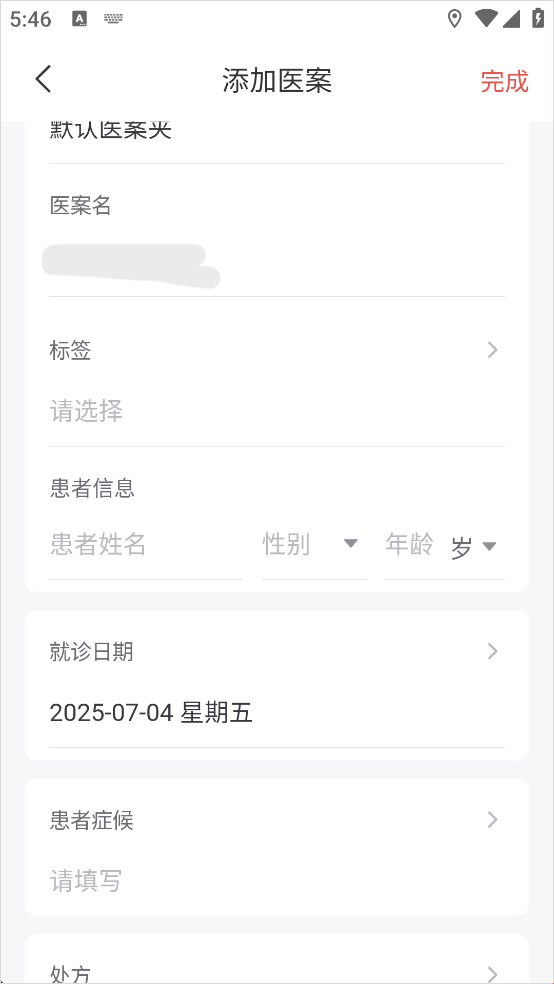 4、最后填写医案关键信息保存即可。