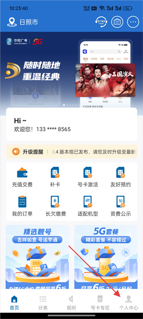1、在本站下载中国广电App后点击右下角个人中心