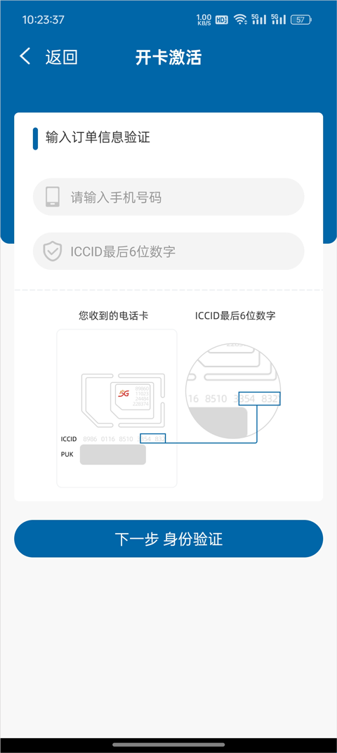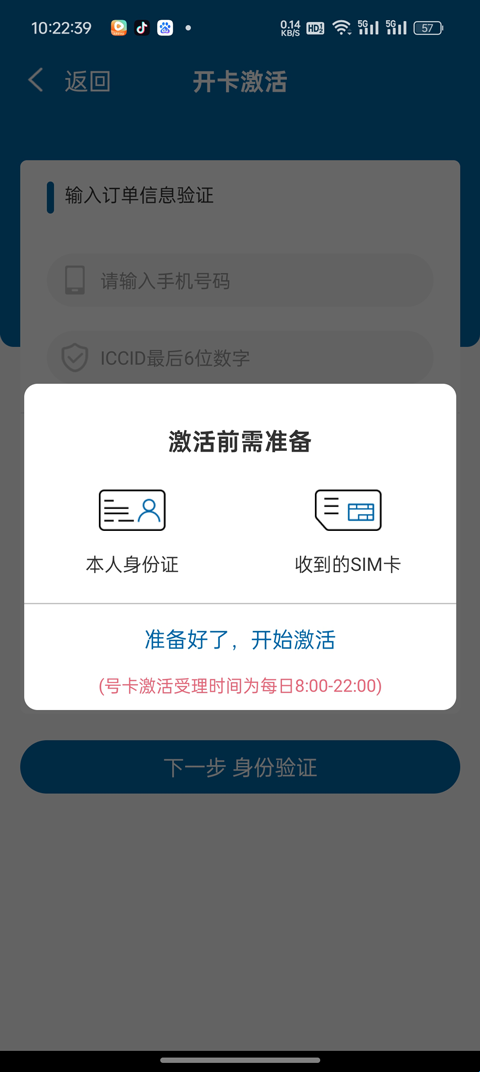 3、激活前先准备好本人身份证以及SIM卡