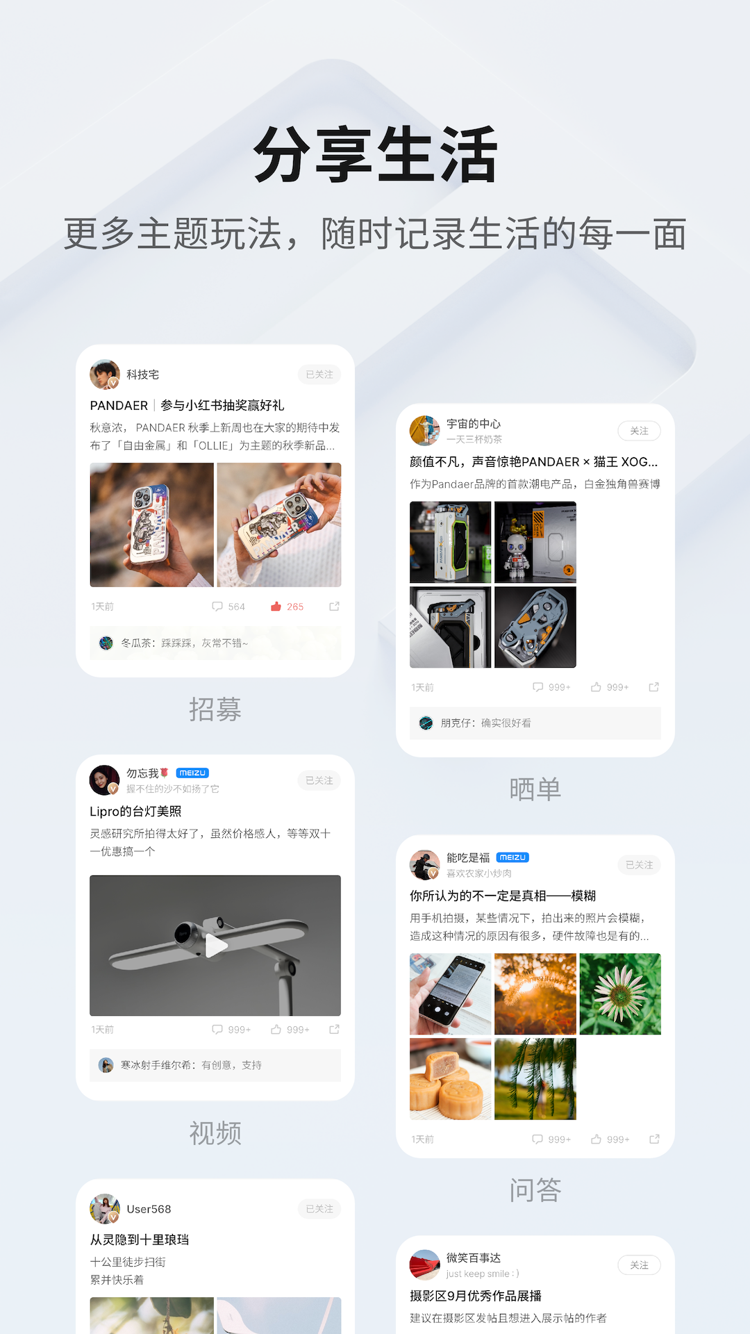 推荐内容包括官方活动、公告、产品介绍,还有科技资讯、科普文章、优秀摄影作品以及其他来自广大魅友的精华内容。