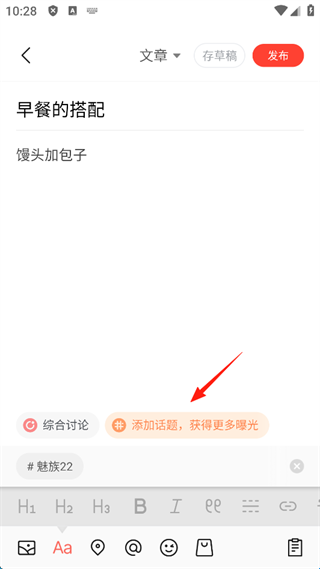 4、也可以通过添加话题来增加曝光率,点击屏幕下方的“添加话题…”。