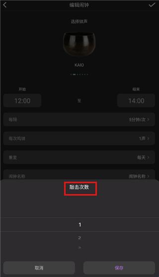 4、以及每次鸣体的敲击次数,选好后点击保存即可