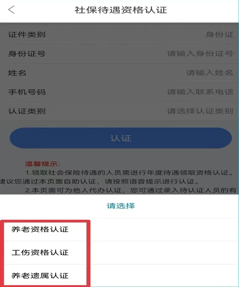 温馨提示:退休待遇领取人员请选择“养老资格认证”
