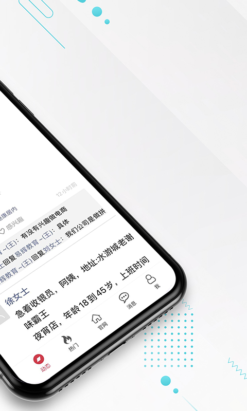 免费发布动态,查看周边信息,与周边的人分享每个精彩瞬间,记录自己的生活点滴。