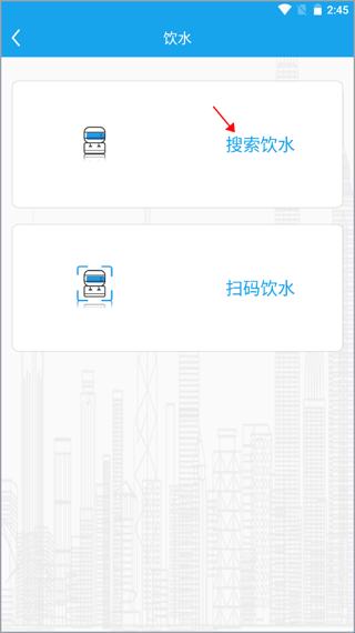 2、有两个连接饮水机的方式,点击上方的“搜索饮水”。