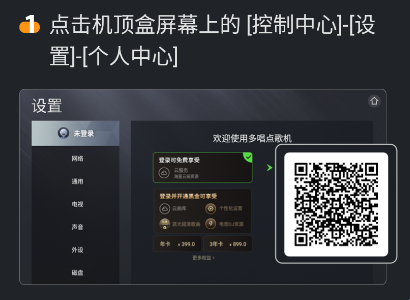 先点击电视屏幕上的【控制中心】-【设置】-【个人中心】进行登录,调出二维码。