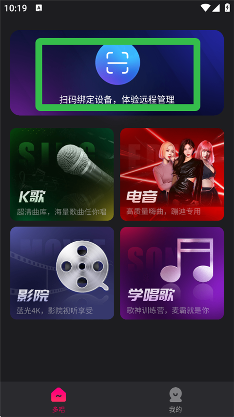 然后打开多唱app,点击扫描标识进行扫码绑定设备。