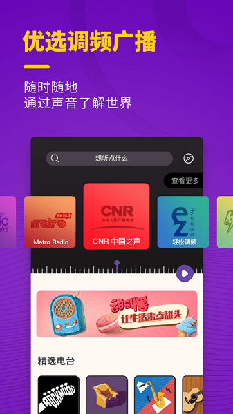 1、使用了先进的解码引擎,即使网络状况很差也能收听到高质量的电台广播。