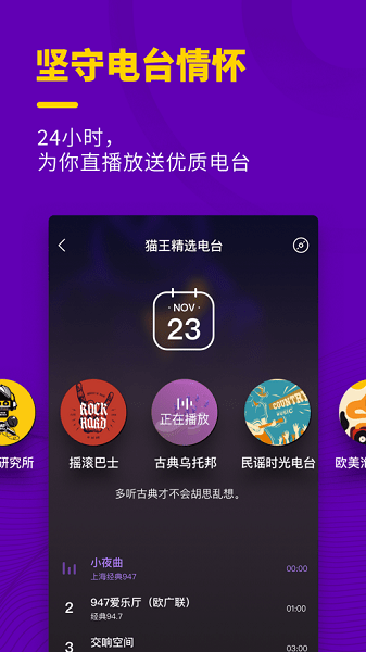 4、能够手动切换音乐电台,让您寻找自己喜欢的音乐电台,让大家都可以自主关注电台。