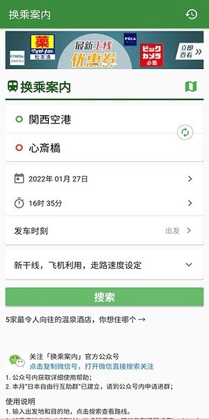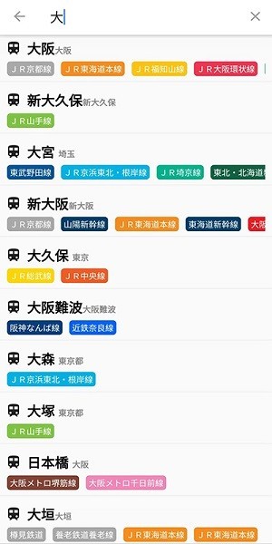 3、全中文查询,起点、终点全中文输入,支持联想功能,方便在相近的日文站名中选择。