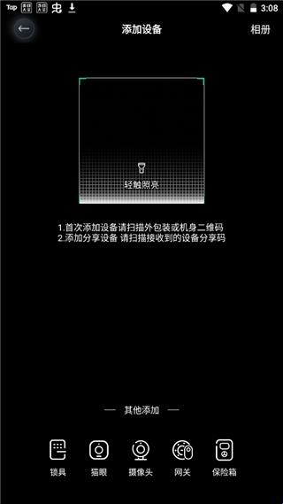 4、我们点击扫码搜索设备,扫描外包装或机身二维码即可连接成功。