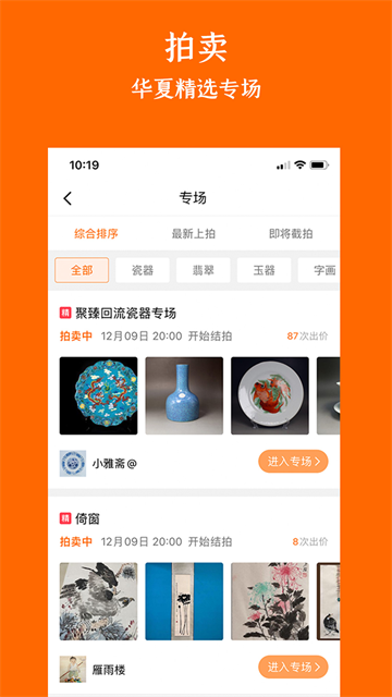 2、【藏品拍卖】实时在线竞价拍卖,购买您称心的宝贝