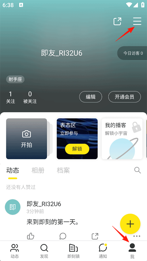 1、打开即刻APP,点击我的-右上角三线横杆;