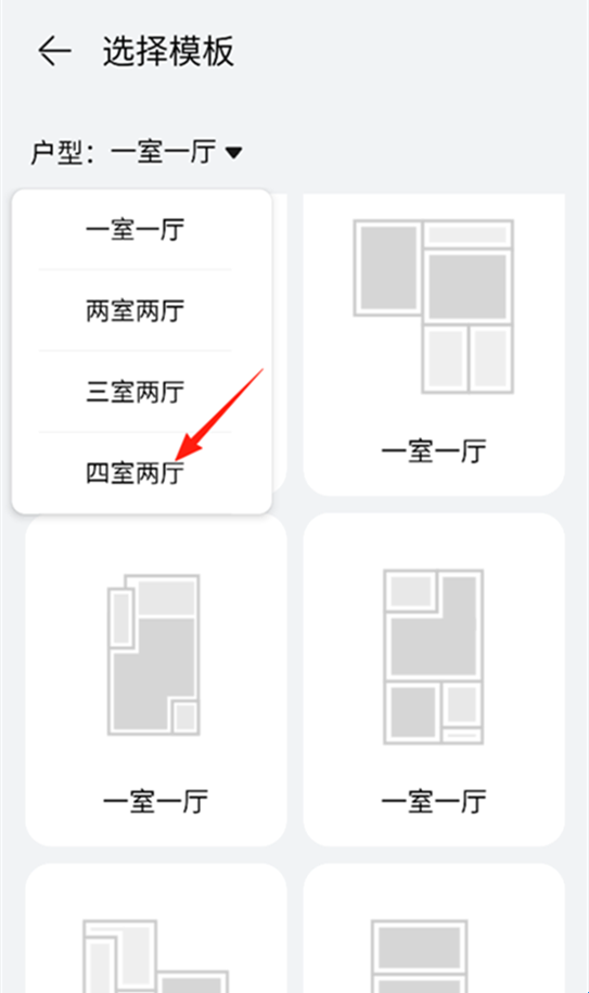 4、点击屏幕下方的“三室两厅”,来更换自己的户型,方便模拟。