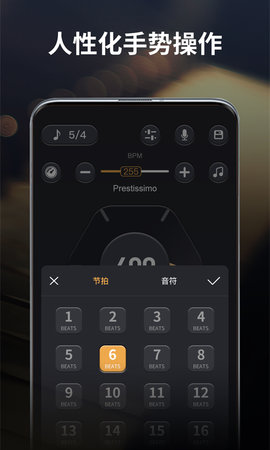 古筝节拍器app非常实用,在专业功能一应俱全的情况下,还保持了极简的设计和极佳的易用性,并内置了十种高品质音色供你选择,闪光灯功能可以让你在静音状态下也能保持准确的节奏。