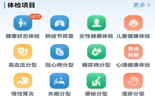 1、体检项目:为用户提供了多种的健康体检项目,可以通过体检项目来获取线下体检。