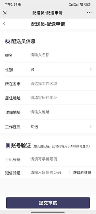 4、在配送申请页填写您的相关信息后点击提交审核等待结果。