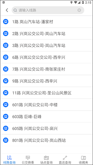 2、输入公交线路信息,选择要查询的线路;