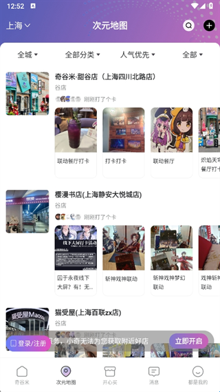 4、地缘地图为大家呈现了周边的二次元相关的店铺,买谷子、漫画点等等,方便大家寻找。