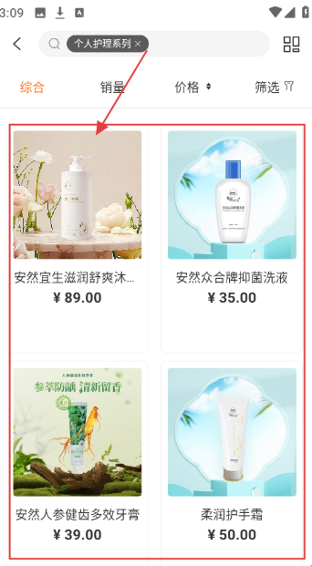 2、在养颜护肤类页,有卫生护理系列、个人护理系列等,选【个人护理系列】,进入该系列商品页。