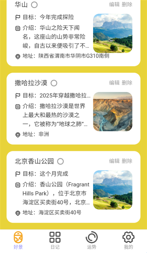1、可以在这里添加自己的旅游目的地,一步步探索。