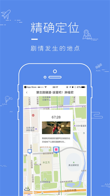 3、以经纬度确定电影场景的剧情发生点,标示在地图上,绝非一个景区的几何中心点。便于快速找到电影故事的发生地。